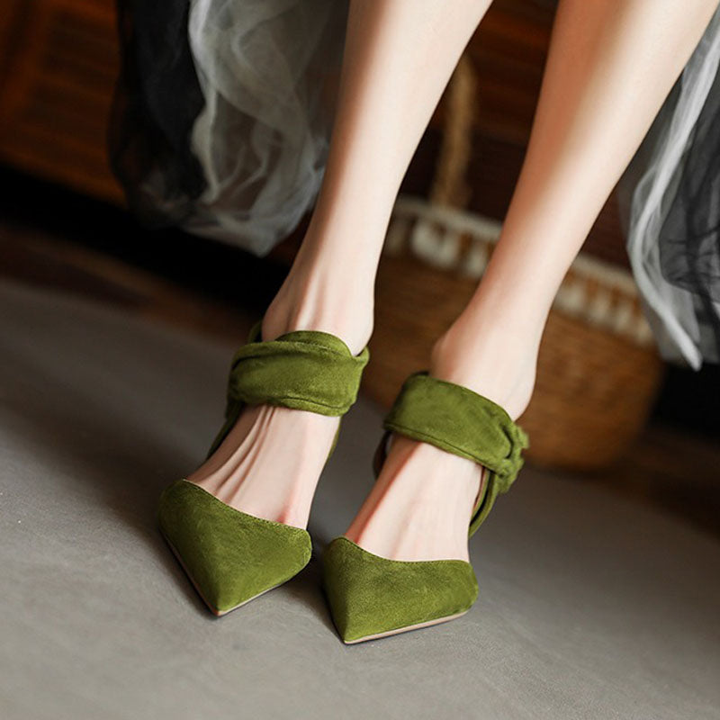 Women's Straight Buckle Cowhide High-Heeled Sandals Green