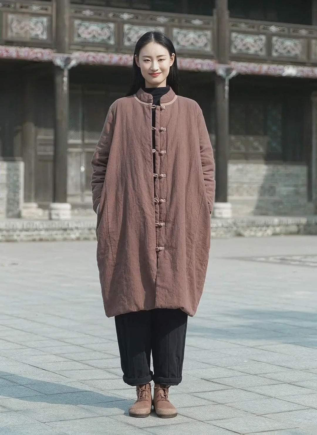 Women's Winter Coat Oversized Linen Cotton Coat with Handy Pockets
