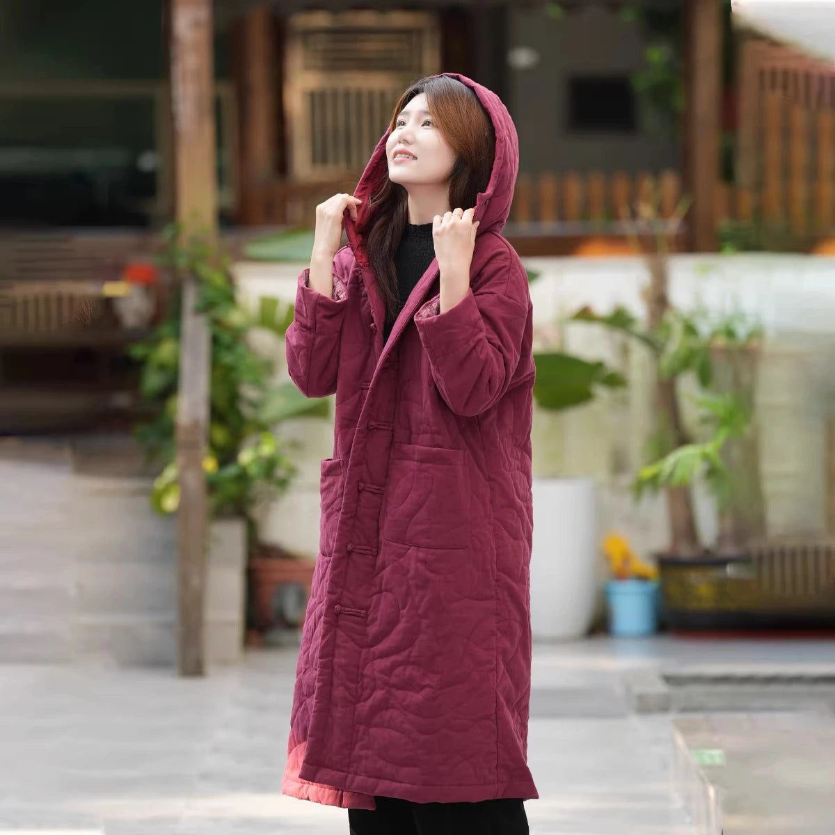 The natural linen fabric breathes beautifully while the quilted padding delivers subtle warmth for unpredictable weather. An adjustable hood provides protection without sacrificing style, and generous pockets keep your hands warm and essentials close. The clean, tailored cut works seamlessly with your existing pieces—dress it up with heels or down with sneakers. Invest in a coat that balances understated sophistication with genuine utility, season after season.